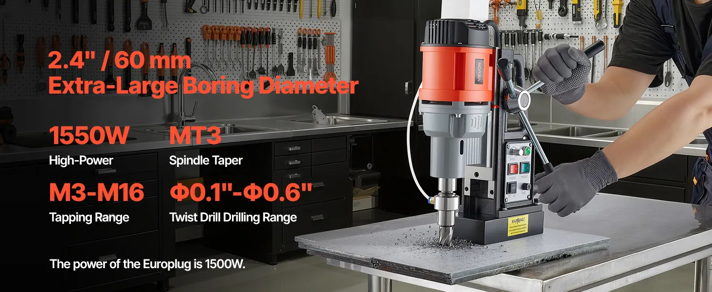 Магнітний дриль VEVOR 1500 Вт, діаметр свердління 60 мм, помаранчева система свердління 600 об/хв